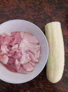 (1)将小白瓜洗净切片,猪肉切片,蒜末切末。